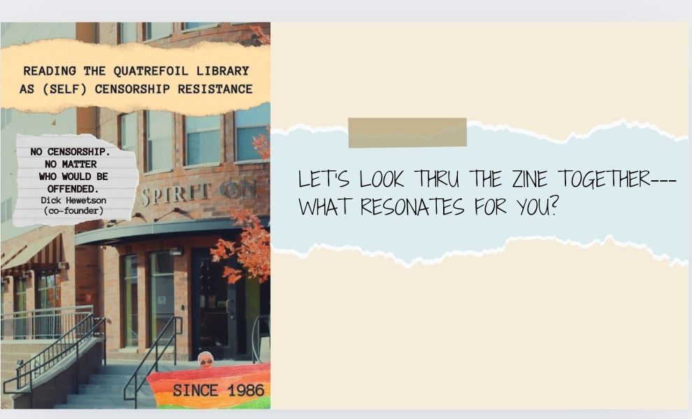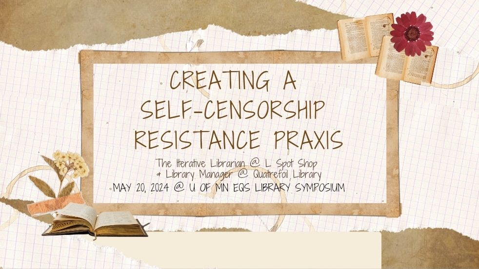 Before we begin, I want to extend a big, warm thank you to Josh and the team at the University of Minnesota for thinking of the Quatrefoil Library and giving me the opportunity to share my ruminations at the very busy intersection of the history of the Quatrefoil Library, censorship and specifically self-censorship, the value of really exploring “what is a book”, and how to create a self-censorship resistance praxis.