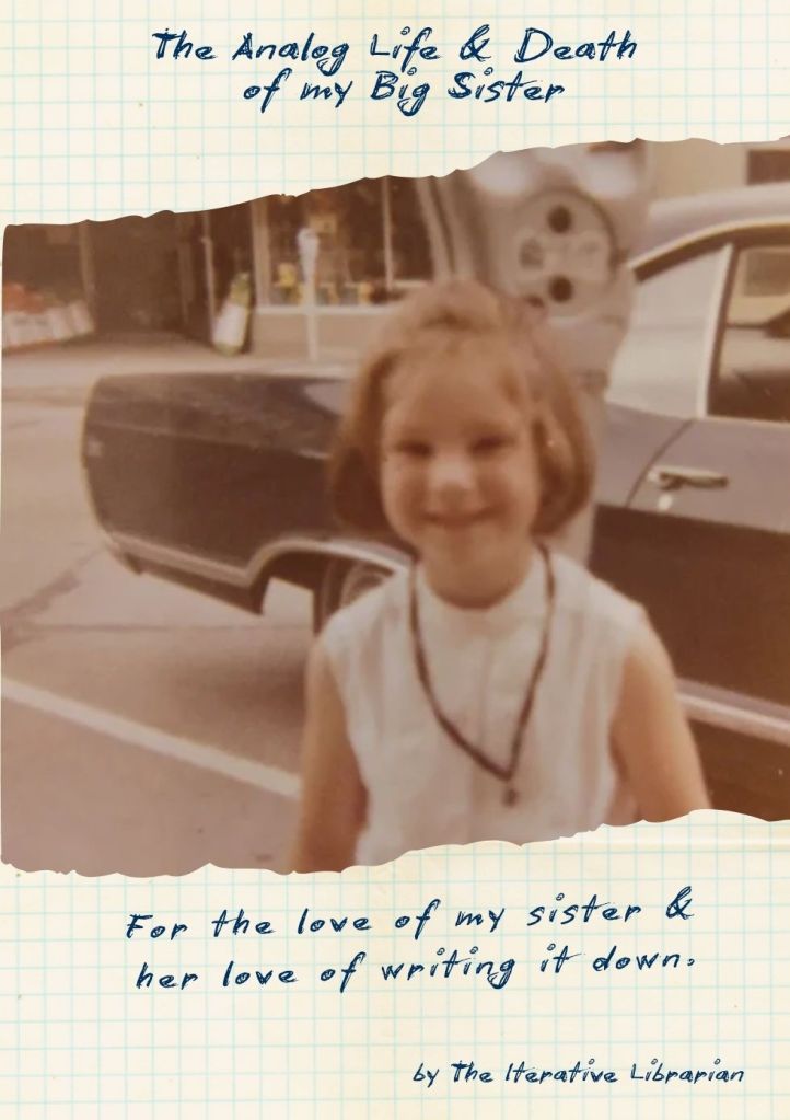 On the third month anniversary (January 21, 2025) of my big sister’s death, I am almost done with my latest zine: The Analog Life & Death of My Big Sister — an homage to my sister, her love of writing things down, and the archival materials she left behind. Scribbled phone numbers, worn address books, scratched notes on envelopes — all reminders of a life lived offline–not by trend or nostalgia, but because it was her modus operandi. Born in 1960, pen and paper weren’t a throwback — they were how she moved through the world, how she stayed connected and maintained communication–with herself and the people she loved.