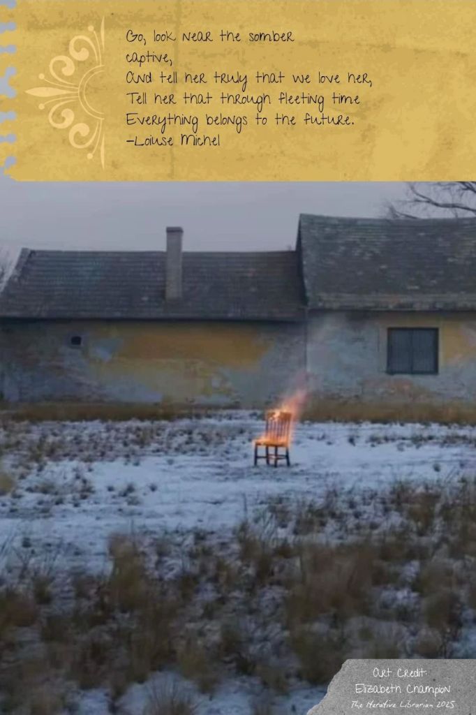 I do not know how or when I came across Champion’s critically engaging image; this fragment of Louise Michel’s poem, Red Carnation, or how my mind created this visual collaboration. I never really do know. My process is relatively inexplicable–spontaneous, instinctual. I truly live Out with Lanterns, exploring the landscape of my poetic memory (M. Kundera), hunting for treasures and tucking them into my pocket, as I make my way along.