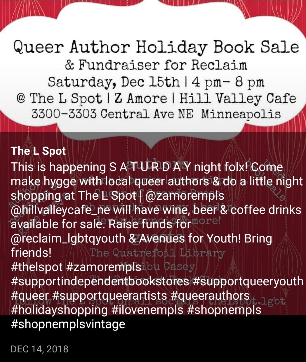 1st Annual Queer Author Holiday Book Sale December 2018 | Hill Valley Cafe (closed)