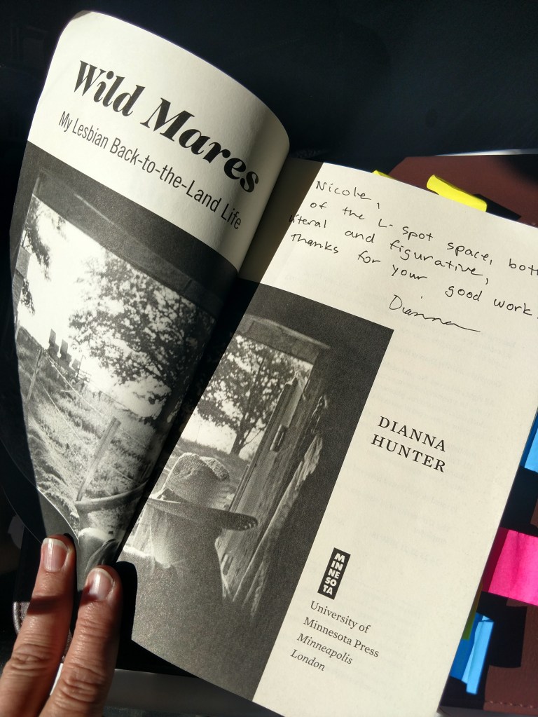 The L Spot and Quatrefoil Library are thrilled to present a rare and intimate evening with activist, educator and memoirist, Dianna Hunter, who will read from her recently published memoir, Wild Mares: My Lesbian Back-to-the-Land Life (University of Minnesota Press).