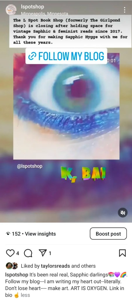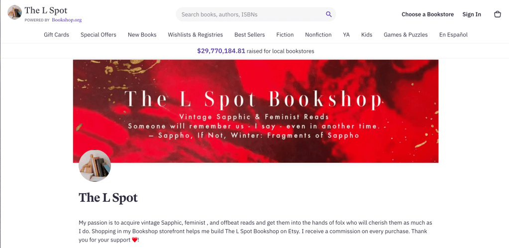 The L Spot Shop has been holding space for vintage Saphhic, feminist and off beat reads since 2017, and now it is time to say farewell.